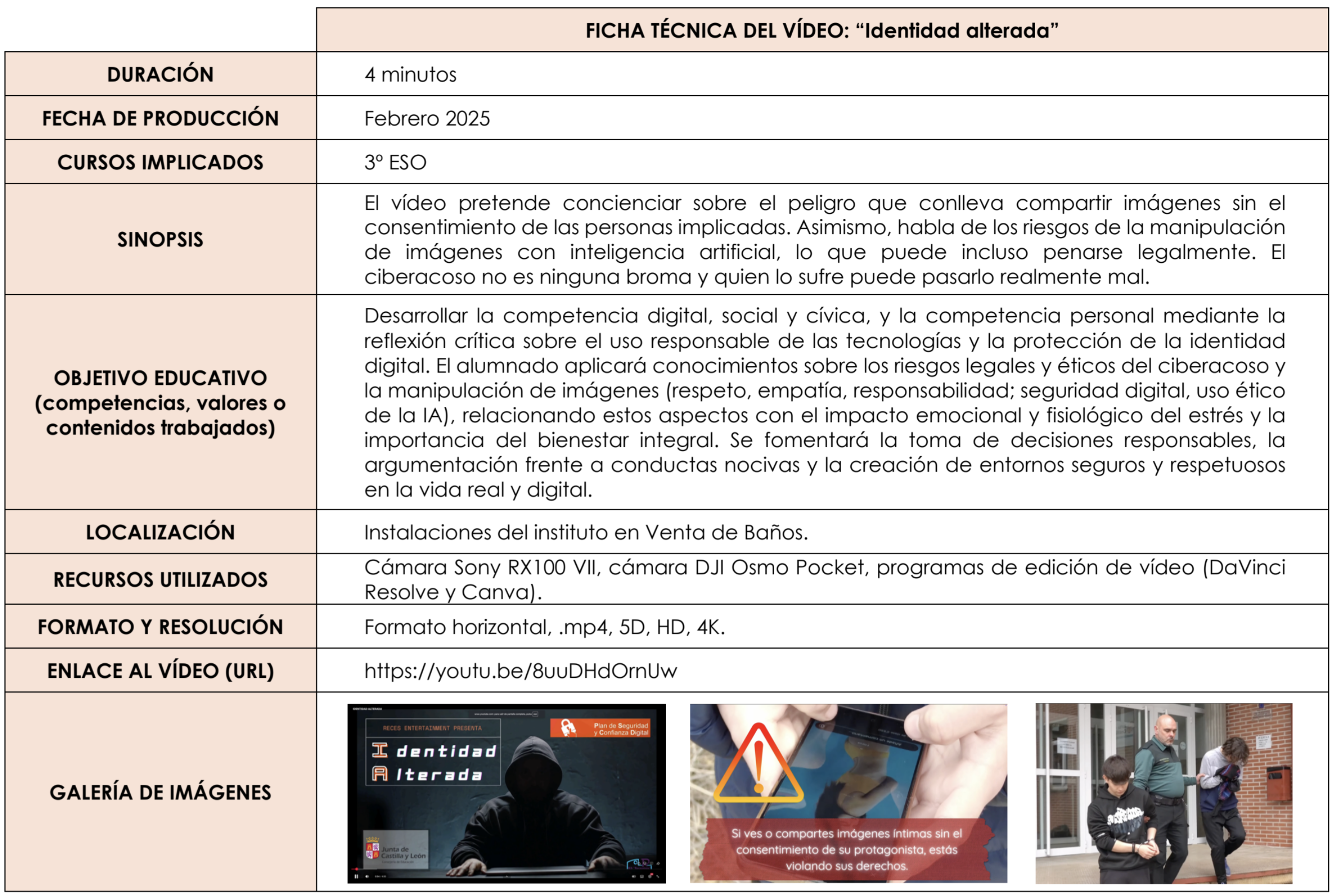 3º PREMIO en el concuso del Plan de Seguridad y Confianza Digital con nuestro corto contra el ciberacoso "Identidad Alterada" en el curso 24/25.