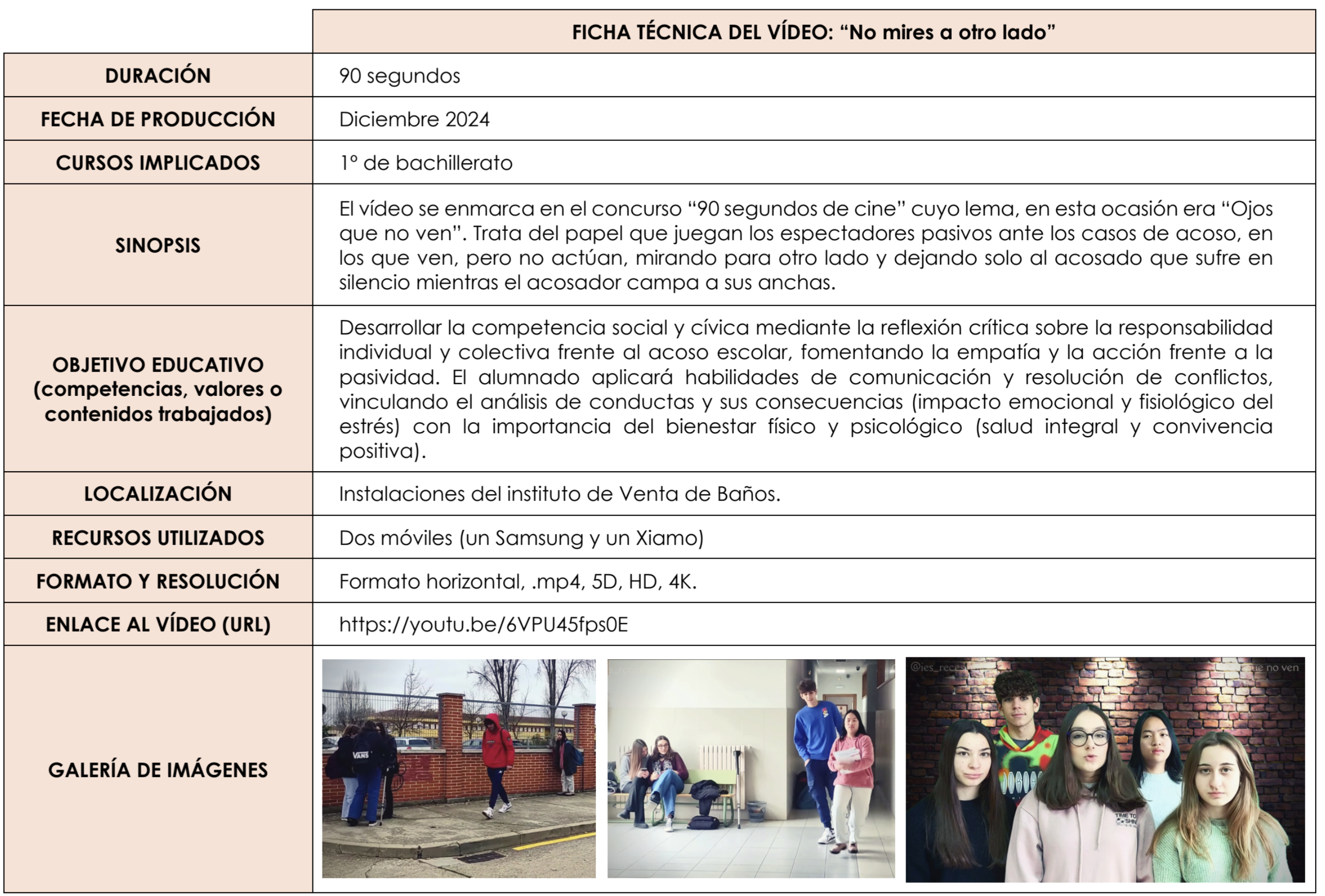 PARTICIPAMOS en el concurso 90 segundos de cine de Palencia con nuestro corto "NO MIRES A OTRO LADO" en el curso 24/25.