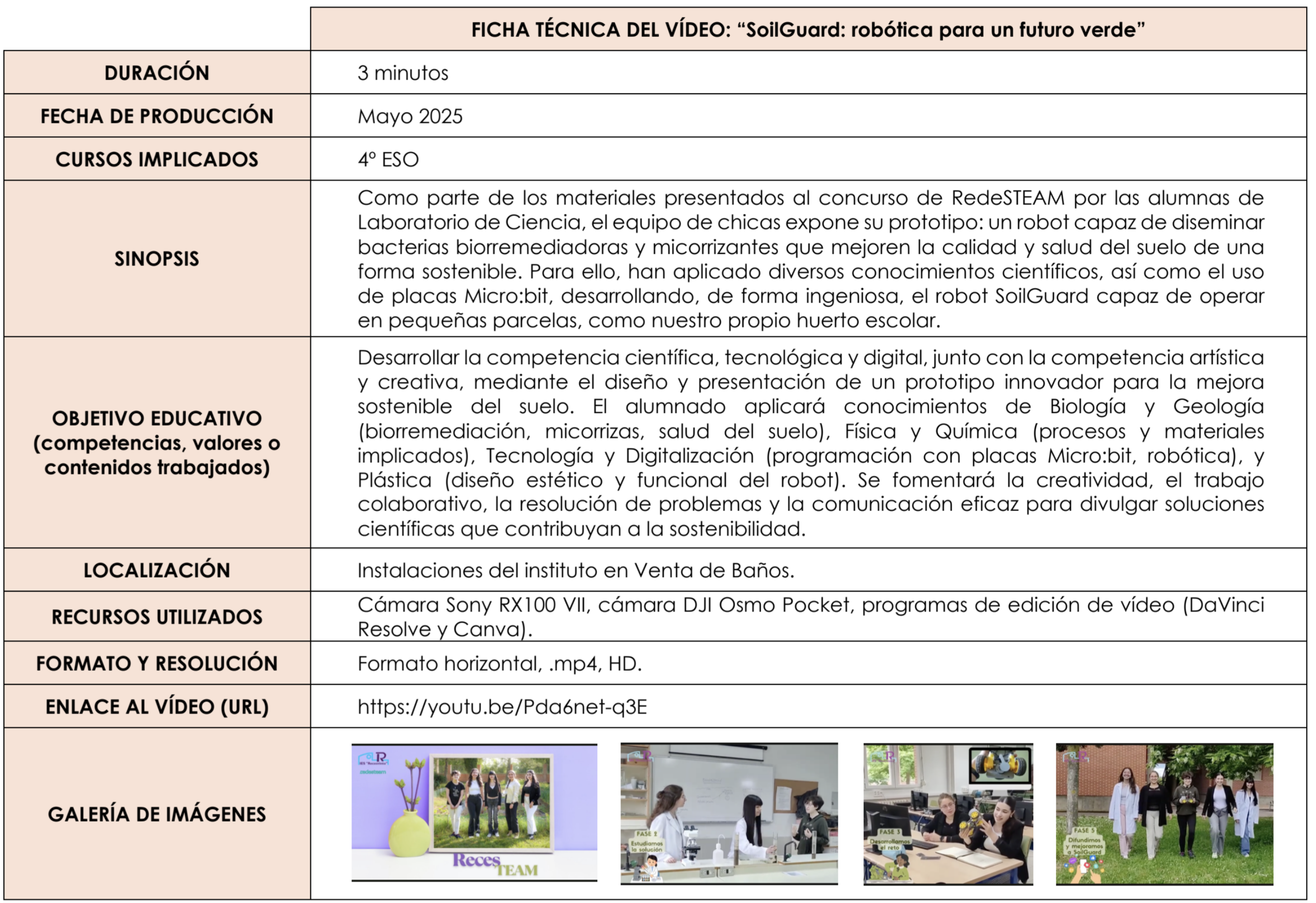 FINALISTAS en el concurso de RedeSTEAM con nuestro proyecto "SoilGuard: Robótica para un futuro verde", en el curso 24/25.