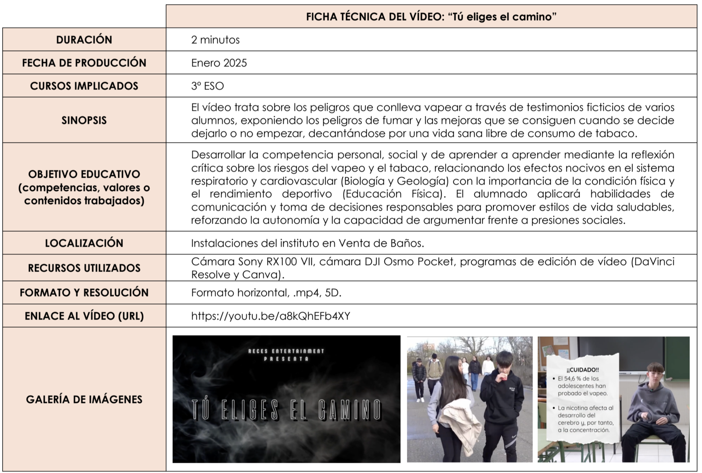 GANADORES de un accésit en el concurso nacional "Historias sin tabaco" con nuestro corto "TÚ ELIGES EL CAMINO" en el curso 24/25.